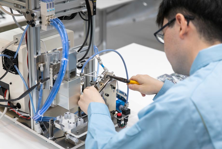 お客様のニーズに迅速に対応し、各種部品製造用の専用機から搬送装置、検査装置、ロボットを使用した自動化装置など、オーダーメイドの産業用機械の設計と製作を行っています。